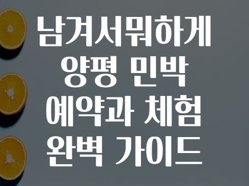 남겨서 뭐하게? 양평 민박 예약과 체험 완벽 가이드 🏡🌿